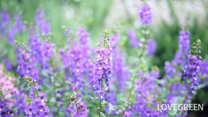 レモンの香りがする一年草。紫がかったピンクの花は、ダンギクのように段々に花がつく。