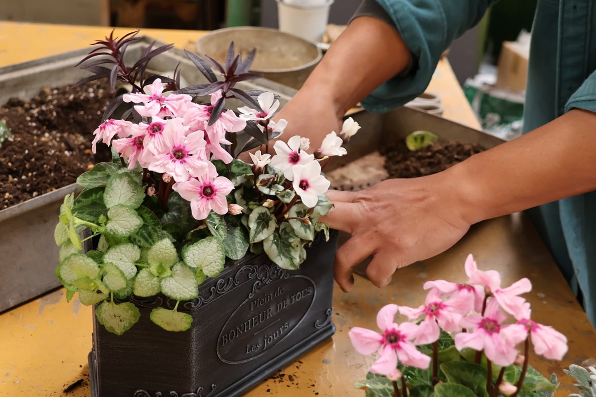 さいたま市の園芸店「フローラ黒田園芸」の黒田健太郎さんに、おしゃれなミニシクラメンを使った冬から春まで楽しめる寄せ植えを教わりました。冬の寄せ植えの作り方や作るときの5つのポイント、スタッフさんが作ったアレンジ例をご紹介します。