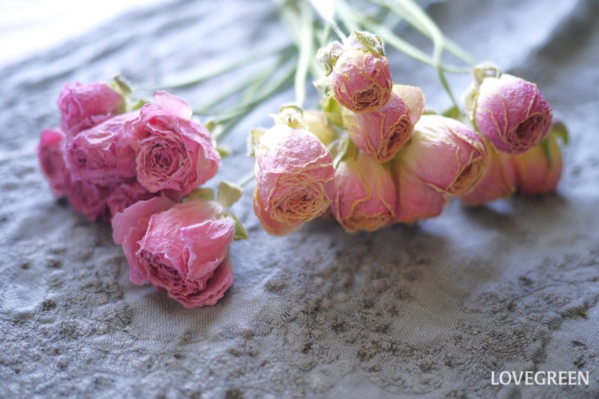 野バラは乾燥すると固くなって、丸めにくくなったり折れたりするので、フレッシュのうちに丸める作業をするのがポイントです。