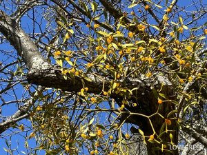 ヤドリギの英語の名前は Mistletoe(ミスルトゥ)です。ルはほとんど聞き取れないので「ミソットゥ」と言っているように聞こえます。決して味噌の話をしているわけではありませんので、ご理解ください。