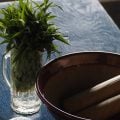 - 時々手首に当ててみて全体のイメージを固めながら組み合わせていきましょう。中心近くにセルリアのお花、端になるほうにアジサイがあると、ふんわりした仕上がりになります。