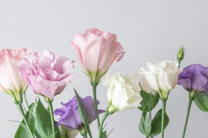 以前は一重のトルコキキョウが一般的でしたが、近年はバラのような華やかさがある八重咲きの人気が高く、多く出回るようになりました。品種により花弁の枚数や花の大きさが違います。