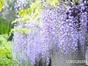 藤(フジ)は日本の春を代表するマメ科のつる植物です。春、ソメイヨシノが終わった頃に薄紫色の花を下げるように咲かせます。花にはわずかな芳香があるので、藤棚の下にいると優しい香りを楽しめます。