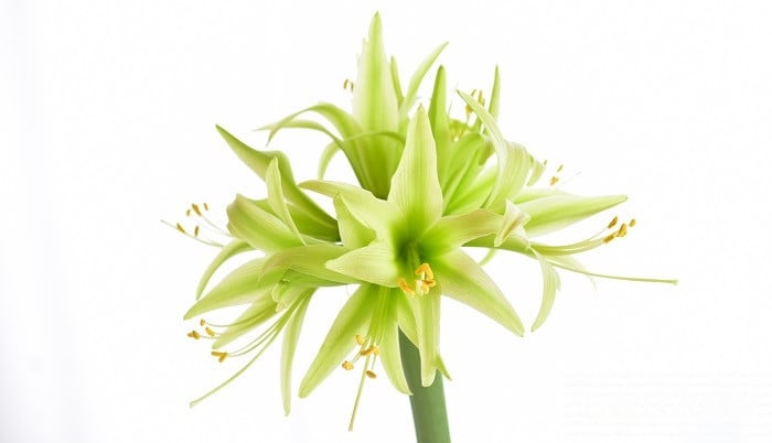 アマリリスはユリのように大きな花とガラス細工のようなテクスチャーが印象的な植物です。また、すっと真っ直ぐに伸びた花姿の美しさも魅力です。
