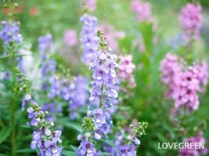 アンゲロニアは、ゴマノハグサ科の一年草。本来は多年草ですが、耐寒性が弱いため、園芸上は一年草として扱われます。夏を少し休んで、9月頃からまた花を次々と咲かせます。