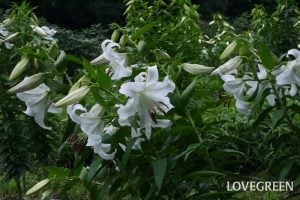カサブランカはユリの中では一番大輪で、草丈1~2mになる耐寒性球根植物です。花が大きく香りが良いのが特徴です。カサブランカ以外にも白いユリはたくさんの品種があります。