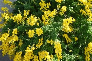 エニシダは、マメ科の落葉あるいは常緑低木。枝垂れた枝にたくさんの花を咲かせます。花色は黄色の他、黄、白、複色などがあります。