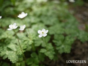 バイカオウレンは、キンポウゲ科の多年草。早春に小さな白い花を咲かせます。落葉樹の足元のような明るい半日陰を好みます。