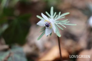 イチリンソウは、日本の山野に自生している多年草。白く可憐な花を1輪咲かせるからイチリンソウと名付けられましたが、2輪咲くこともあります。