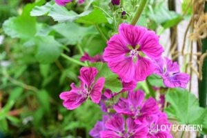 マロウは、アオイ科の多年草。夏に濃いピンク色や紫色の花を咲かせます。コモンマロウの花はマロウティーにして楽しむことができます。