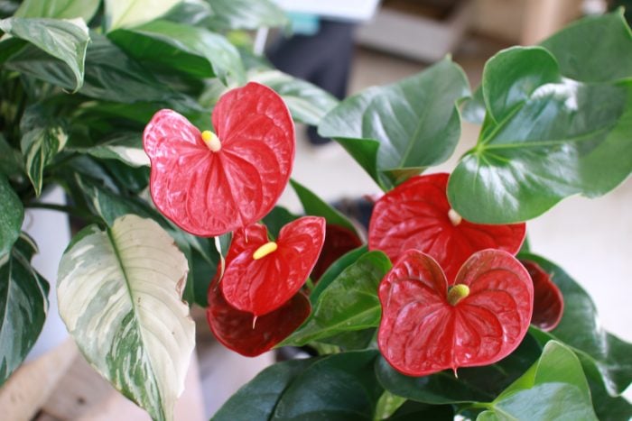 アンスリウムは、つるっとしたテクスチャーとフォルムが個性的な花。花を持って歩くのは恥ずかしいという男性でも、アンスリウムは抵抗が少ないようです。