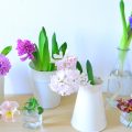 びっくりするかもしれませんが、ヒヤシンスは花瓶に生けてからも茎が伸びます。上の花まで開花してくる頃になると、茎が折れやすくなります。少しずつ茎を切りながら、その時の丈に見合った花瓶に生けなおすと最後まで折れずに楽しむことができます。