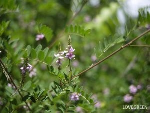 コマツナギは、小さなフジのような花を咲かせるマメ科の落葉低木。コマツナギという名前の由来は、昔、この木に馬をつないだからだとか。低木といっても草丈60~80cm程度と低いので、草花のような印象です。横に伸ばした枝の途中から、くっと上を向くように花を立ち上げる様子がかわいらしい花です。