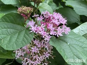 ボタンクサギは、シソ科の落葉低木。初夏から夏に濃いピンクの毬のような花を咲かせます。花には甘い香りがありますが、葉には独特の香りがあります。
