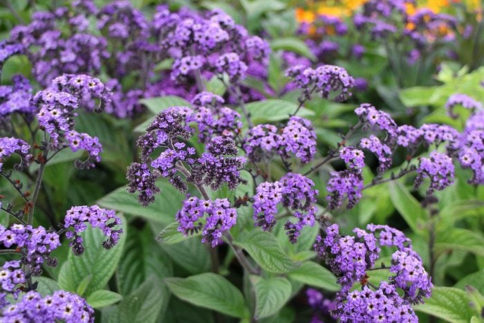 ヘリオトロープは香りの良いハーブとして知られている、一年草または多年草。紫や白色の花がドーム状に密集して咲きます。香りが似ていることから英名で「Cherry pie」とも呼ばれています。
