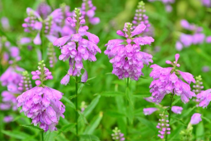 ハナトラノオは、草丈40cm~1m程で、葉は先がとがった細い楕円形、真直ぐに伸びた花茎に四方に突き出すように花を咲かせるのが特徴です。1つの花は長さ2~3cm、色はピンクや淡いピンク、白など、花茎の下の方から咲き始め、穂のようなフォルムを形成します。丈夫で手がかからず、地下茎で増えていくので、数年で大きな株になり、たくさんの花を咲かせるようになります。