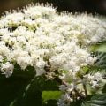 ガクアジサイのような花が特徴的なガマズミの仲間。葉が害虫の被害にあいやすいことから、「ムシカリ」の別名で呼ばれるようになりました。