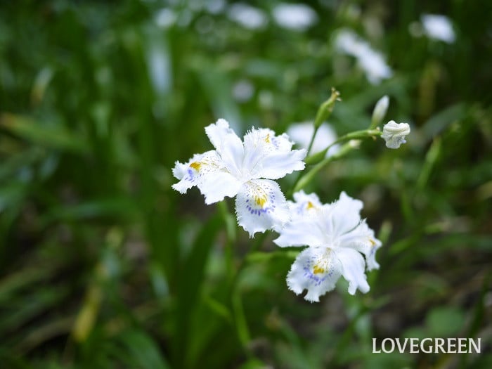 秋から冬に、枝先に白い放射状の丸い花序が集まった白い花を咲かせます。花の後は、白から徐々に緑の実になり、その後、黒くなります。
