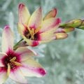 白や淡いピンクの花びらで中心が濃い桃色の花を咲かせます。愛らしい花姿のイキシアです。