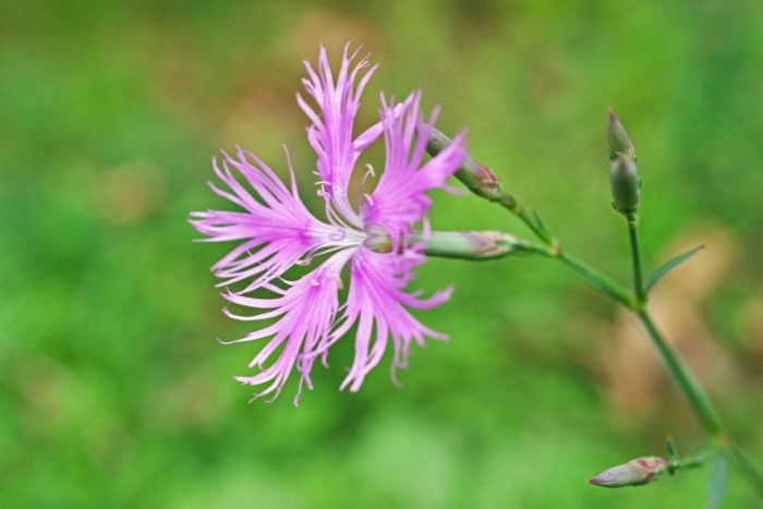 日本原産の品種、カワラナデシコ。深い切込みの花びらが特徴で、花色は白やピンク、紫などがあります。繊細で凛とした印象のナデシコです。
