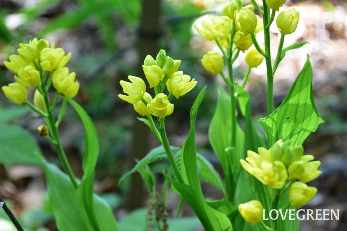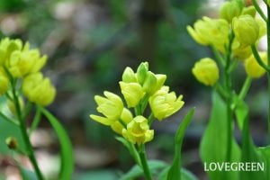 ギンランによく似た植物に、キンランという黄色い花を咲かせる品種があります。この2つは性質がよく似ていて、近くで見かけることの多い植物です。どちらも菌根菌と呼ばれる菌と共存関係にあるため、諸条件が揃った場所にしか自生しません。ギンランは日本の山林に自生する身近なランでしたが、今では生育しやすい環境が減ったせいか、絶滅危惧種とされています。自生するギンランを見かけても、掘り起こして持ち帰ることのないようにしましょう。