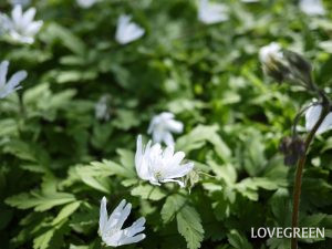 キクザキイチゲの花言葉「追憶」は、早春に咲き、すぐに姿を消してしまうはかなさから連想されたのでないかといわれています。