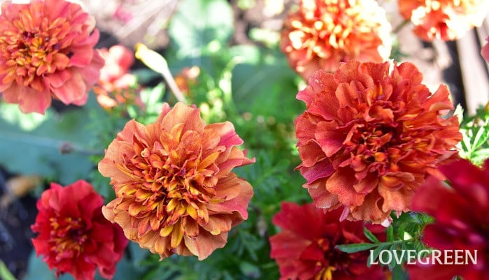マリーゴールドはコンパニオンプランツとしても活躍しています。コンパニオンプランツとは、一緒に植えると互いの性質が影響し合って病害虫が抑えられたり、元気に育つようになる植物のことをいいますが、マリーゴールドは様々な植物と相性が良く、アフリカンマリーゴールドとフレンチマリーゴールドは緑肥として利用するとセンチュウ対策となります。緑肥とは、肥料効果のある植物をそのまま田畑の土と一緒に耕し、そこに栽培する作物の肥料効果を高めるもののことを指します。