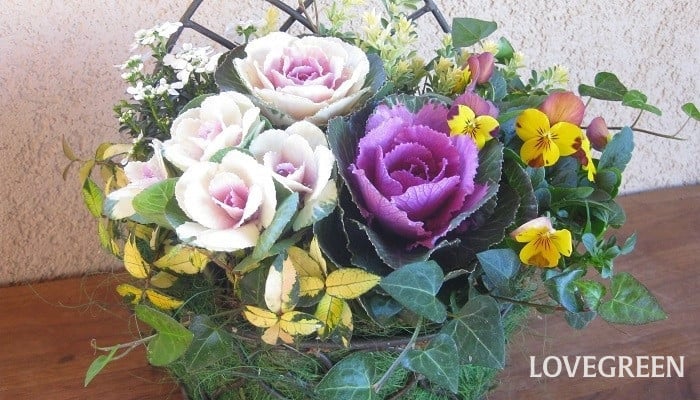 - 葉牡丹(ハボタン)を使った寄せ植え