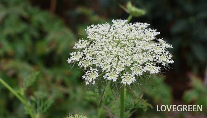 人参は、寒い時期に収穫しないでそのままにしておくと、6月頃にレースフラワーに似た繊細な白い花を咲かせます。