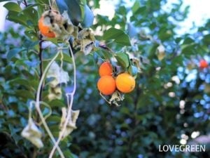 ダイダイはミカン科の常緑高木。橙色の語源にもなっているように、きれいなオレンジ色の果実を実らせます。英名はビターオレンジ。マーマレードなどに加工して楽しみます。