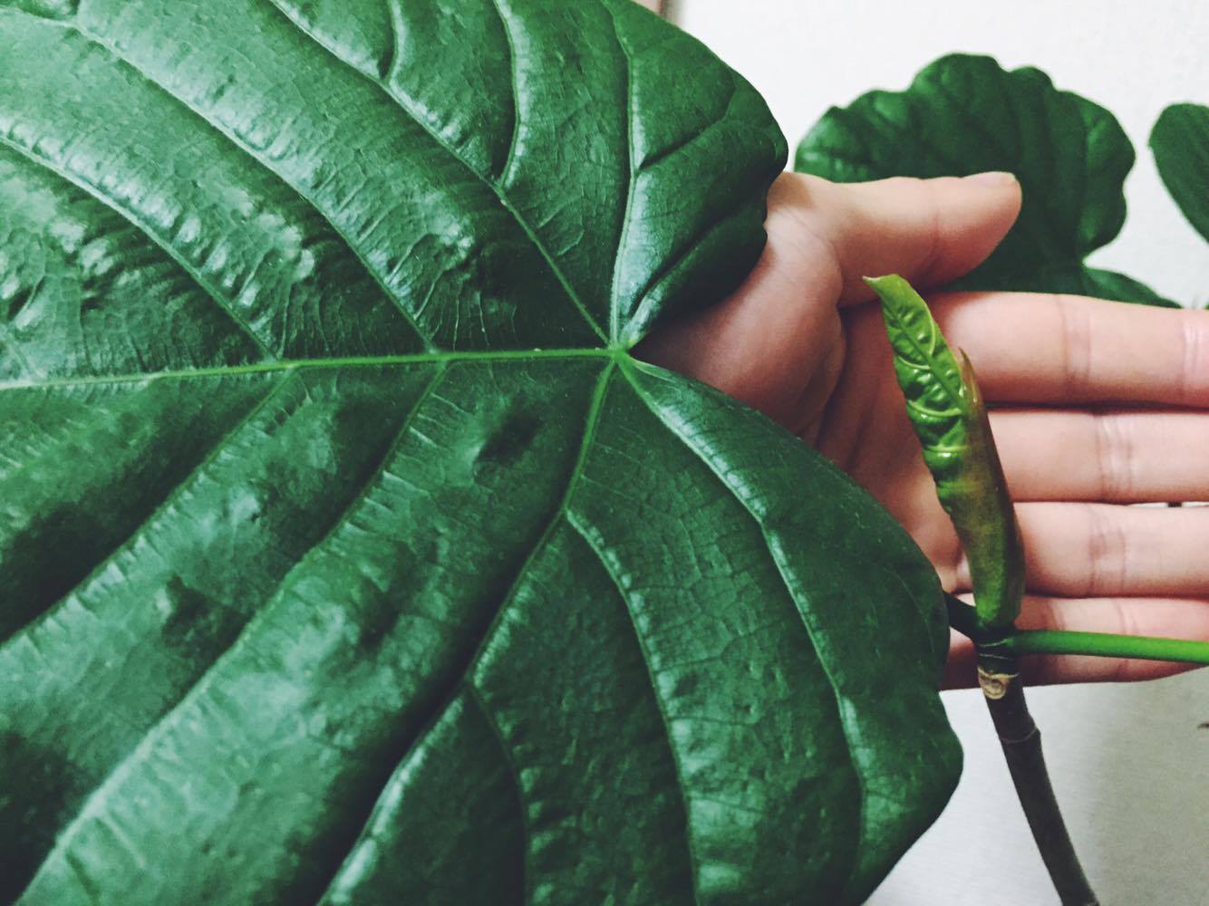 日当たり、日照時間、風通し、湿度…新葉が展開してからは色々な場所を観察し、ウンベラータに最適な場所に置くようにしました。