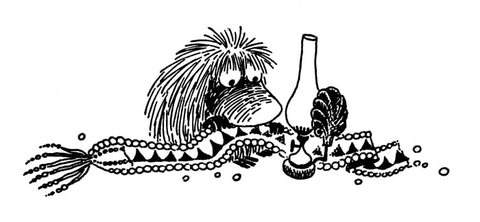 ご先祖さまというキャラクターは、ムーミンやしきのタイルストーブに住みついている、ムーミン一家のご先祖さまなんですよね。毛むくじゃらで長いしっぽがあって、言葉を話さない小さなトロールで、小説「ムーミン谷の冬」の中でムーミントロールと出会い、シャンデリアの上に姿を見せる姿が印象に残っています。