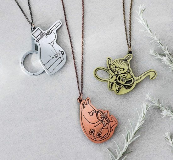 ムーミン、ムーミンパパ、リトルミイと3種類のデザインがあるのですが、どのキャラクターもそれぞれ虫眼鏡や望遠鏡、眼鏡を覗き込んでいるポーズの絵柄を使っているところがこだわりポイントです。