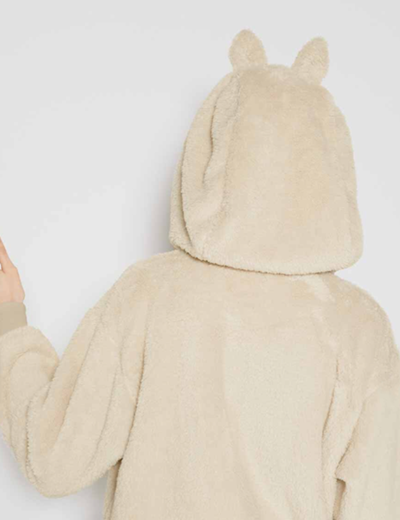 なんと、ご先祖さまバージョンのもこもこボアパーカーは、フードを裏返すとご先祖さまの姿のように見えるんですよ。