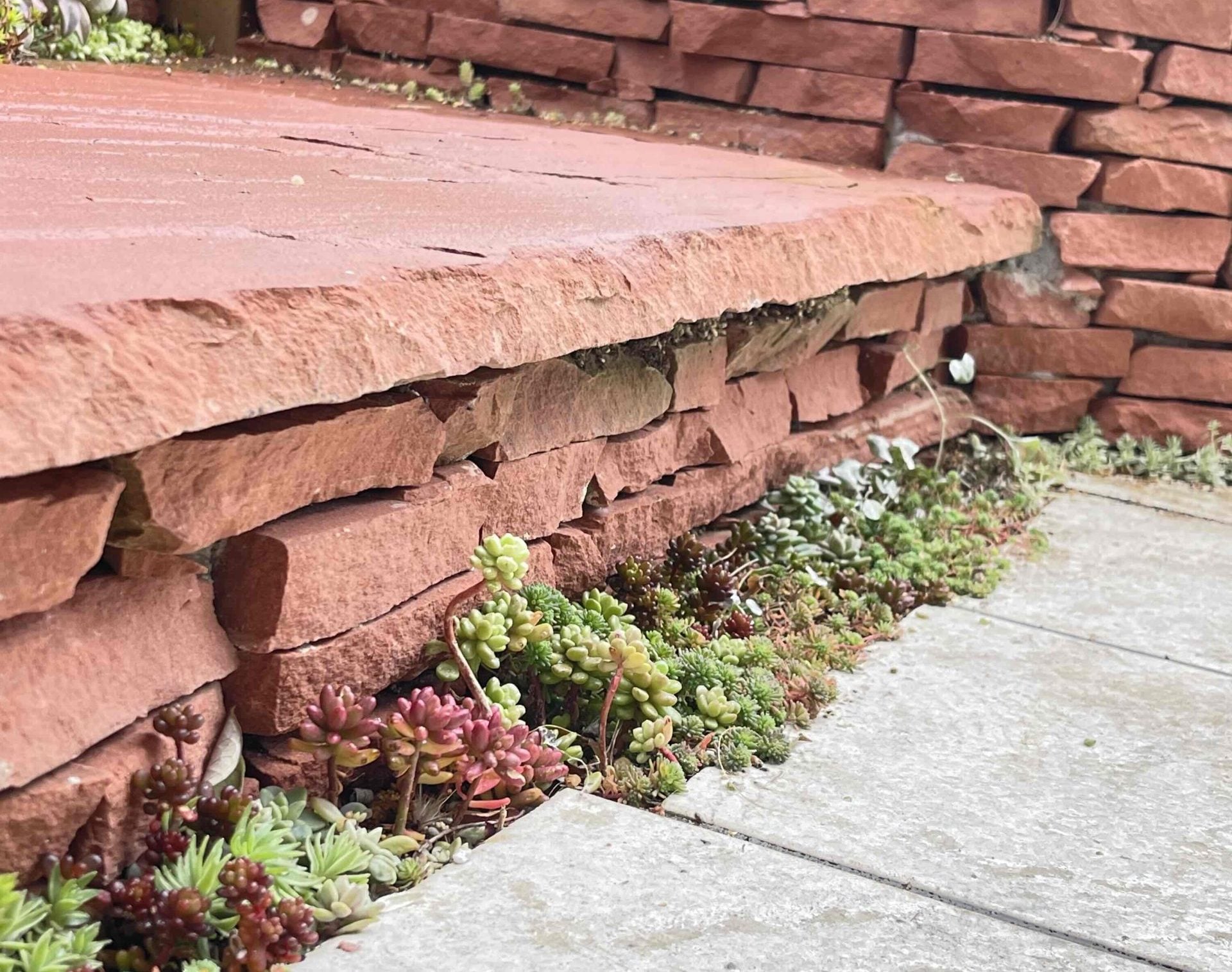 石積みにはわざと隙間を設けて、後からセダムなどを植えられるようしてある